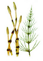- выводить из организма соли, токсины, есть данные, что хвощ полевой выводит даже радиоактивные нуклеотиды, что чрезвычайно важно для людей, находящихся в зоне повышенной радиации. Ценным свойством хвоща является то, что он улучшает водно-солевой обмен, предупреждает образование мочевых камней. Но и этим еще не ограничивается спектр целебного действия хвоща, который является еще и хорошим витаминным средством. Применение хвоща дает хорошие результаты при желчно- и почечнокаменной болезни. Хвощ оказывает общеукрепляющее действие при туберкулезе. Также обладает гипотензивным действием, то есть снижает артериальное давление, в связи с чем, его применяют при гипертонии, эффективен он при сердечно-сосудистой недостаточности, отеках (хвощ в этих случаях применяется как мочегонное), при внутренних и наружных кровотечениях. Так как хвощ улучшает водно-солевой обмен, его применяют при подагре, водянке. Хвощ полевой хорошо помогает при таких заболеваниях, как воспаление мочевого пузыря, желтуха, атония матки, глазные заболевания воспалительного характера, острые и хронические отравления свинцом, обильные менструации, кожные заболевания (лишаи, экземы), отеки и другие застойные явления на почве недостаточного кровообращения и при заболеваниях почек, язвы кишечника, аддисонова болезнь, воспаления седалищного нерва, головные боли, воспаления и язвенные процессы на слизистой оболочке рта, авитаминозы, заболевания печени.
